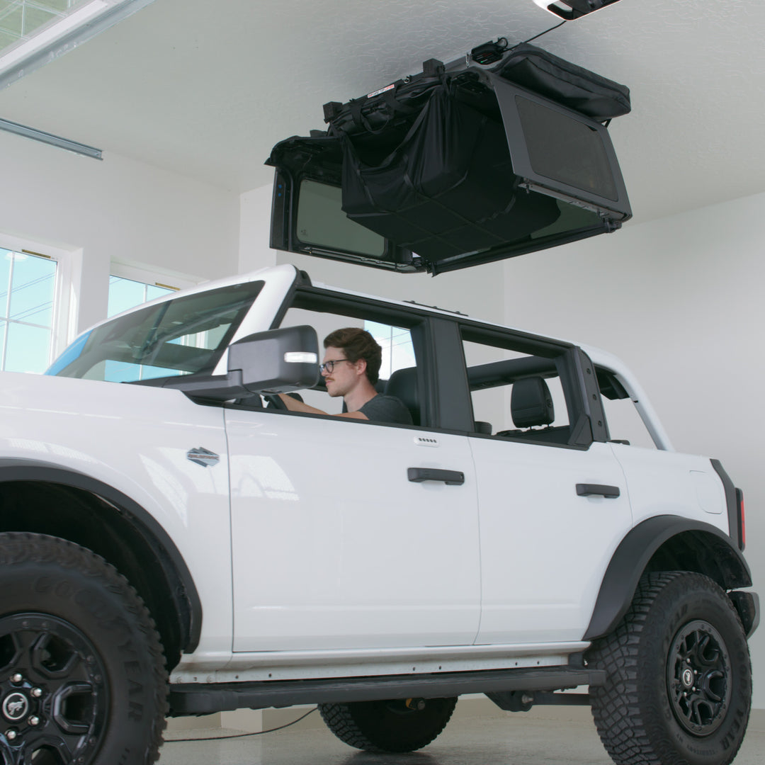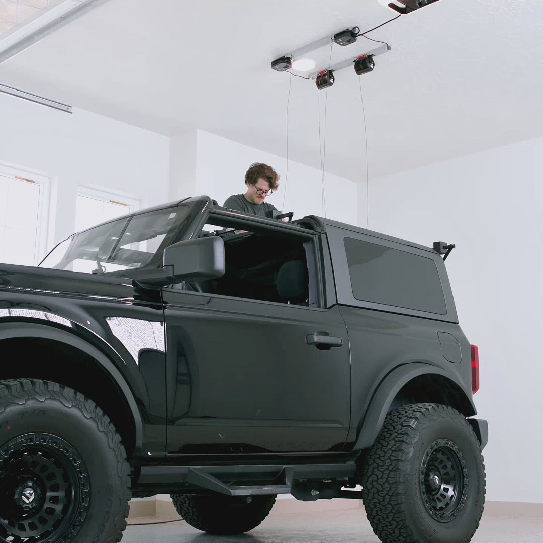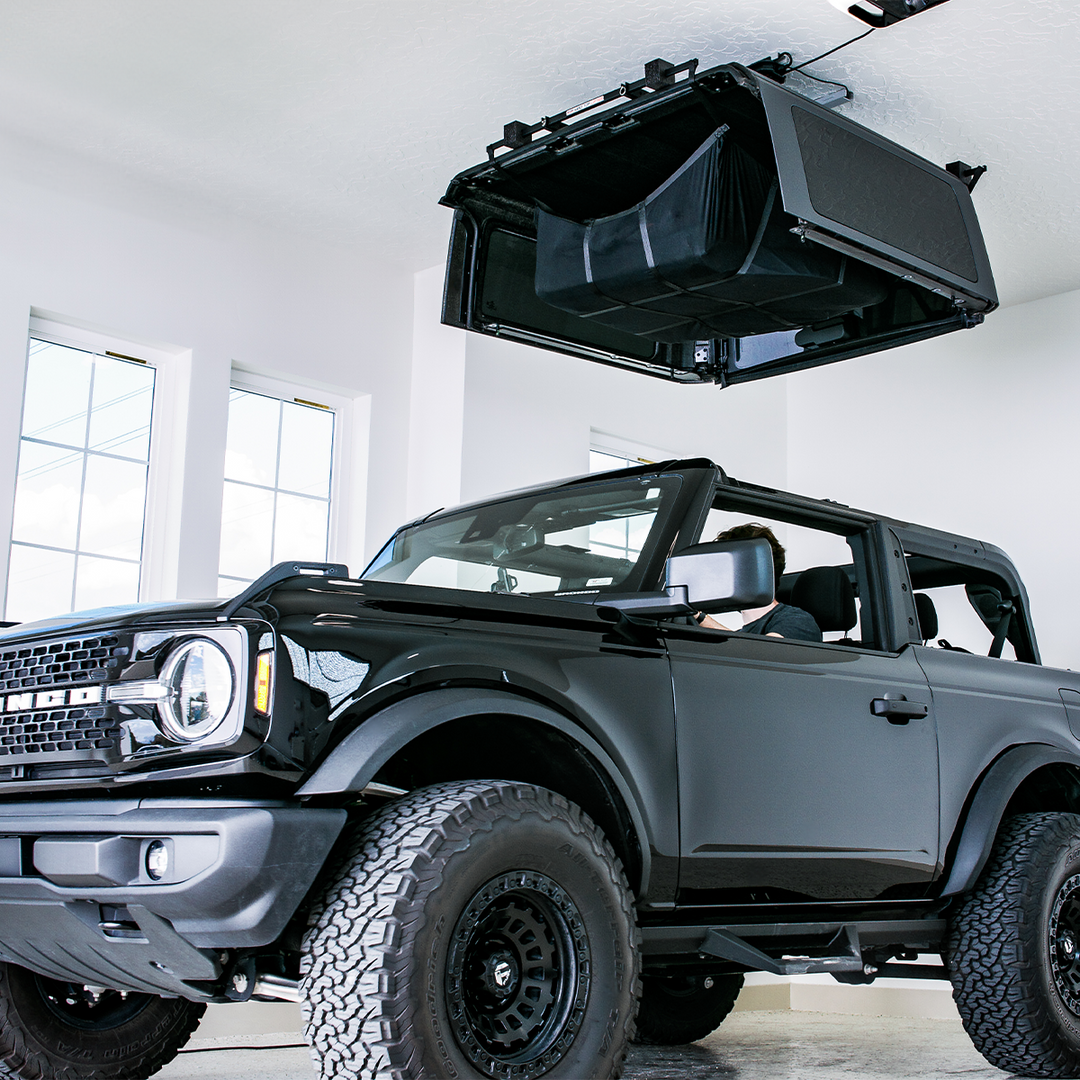 The MyLifter is the smartest and safest overhead storage motor. Period. With advanced features like weight sensing, overload protection, multi motor syncronization, Smart Stopping points, speed control, and a built in automatic lock, there really is nothing else like it. The Hard Top Lifter includes two MyLifter motors that work seamlessly together to hoist and store your hard top.