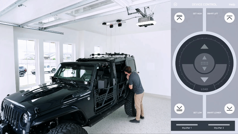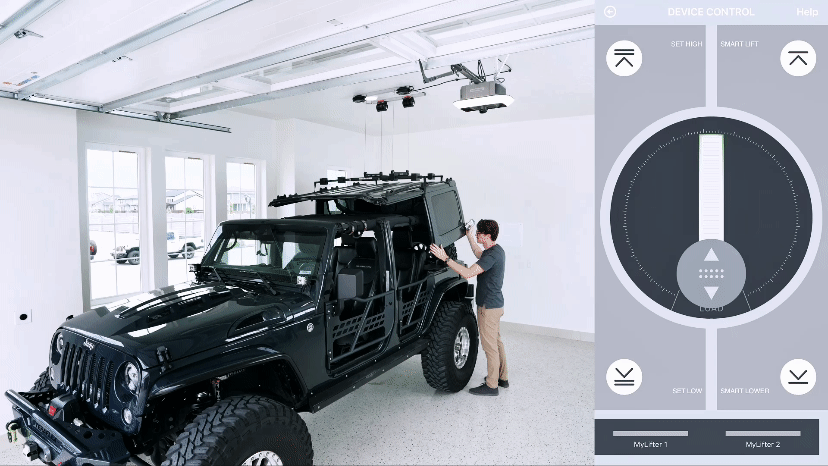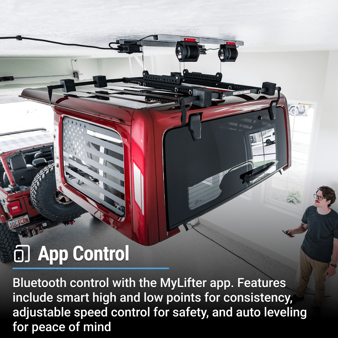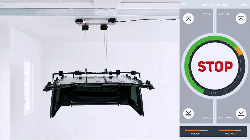 The MyLifter app’s “Smart Points" feature allows you to create raised and lowered limits for your hard top. A single button press on the app automatically moves the item to the selected limit.