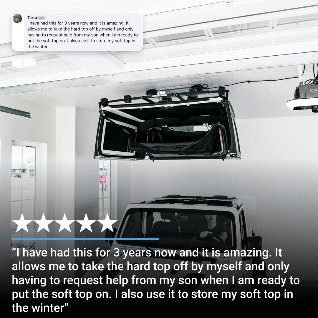 Removing your hard top is only half the battle, the Hard Top Lifter provides the complete solution for removal and storage of your top. What has normally been a hassle becomes a simple, one person job.