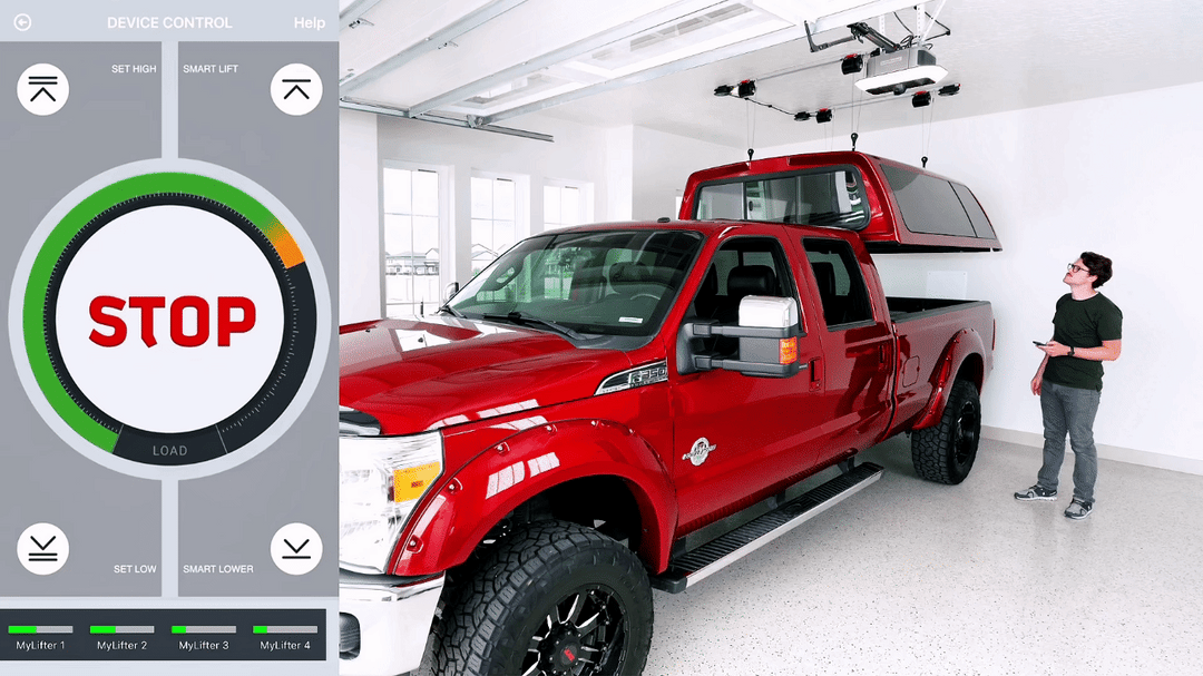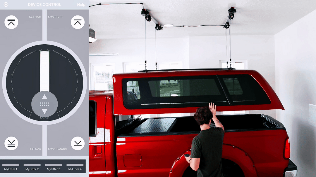 The weight sensing technology built into the MyLifters makes sure that each one is evenly lifting the weight of your truck shell. This ensures even weight distribution on your ceiling framing, keeping you and your family safe.