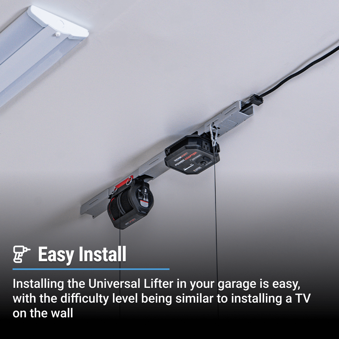 The MyLifter is the smartest and safest overhead storage motor. Period. With advanced features like weight sensing, overload protection, multi motor syncronization, Smart Stopping points, speed control, and a built in automatic lock, there really is nothing else like it. The Universal Lifter includes one MyLifter motor to safely lift and store your items.