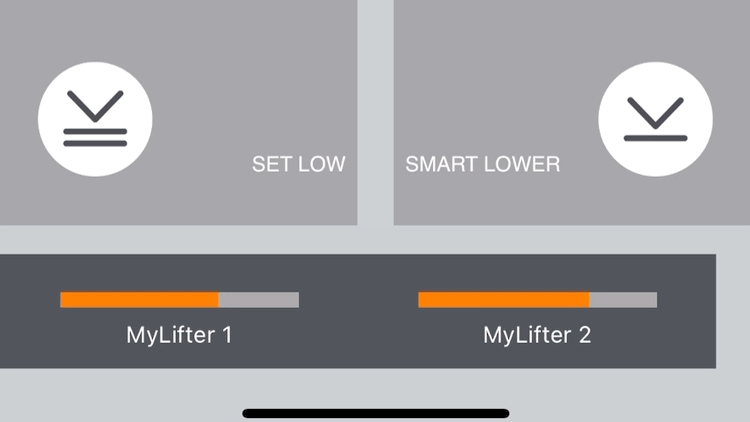 The MyLifter app’s “Smart Points" feature allows you to create automatic stopping points at your ceiling and floor. A single button press in the app automatically moves the item to the programed points.