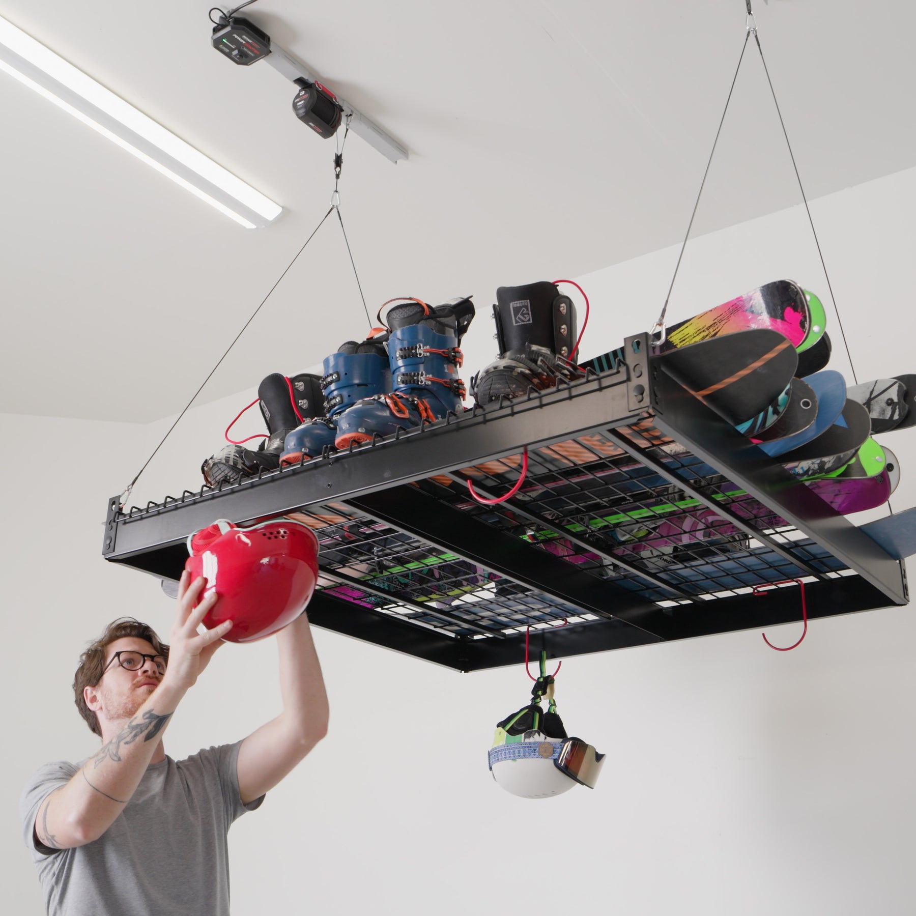 Because the hooks hang below the platform, you will not be able to lower the platform completely to the ground.