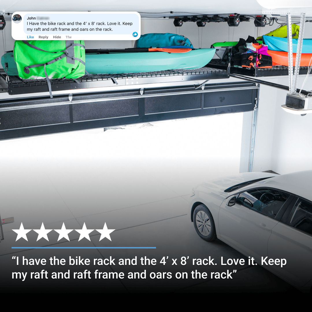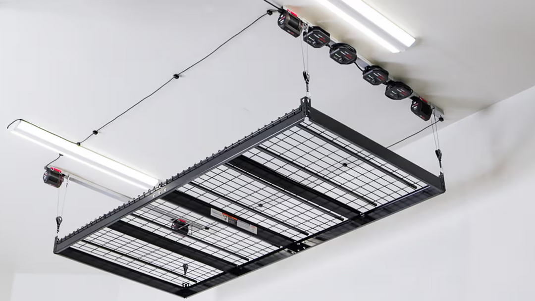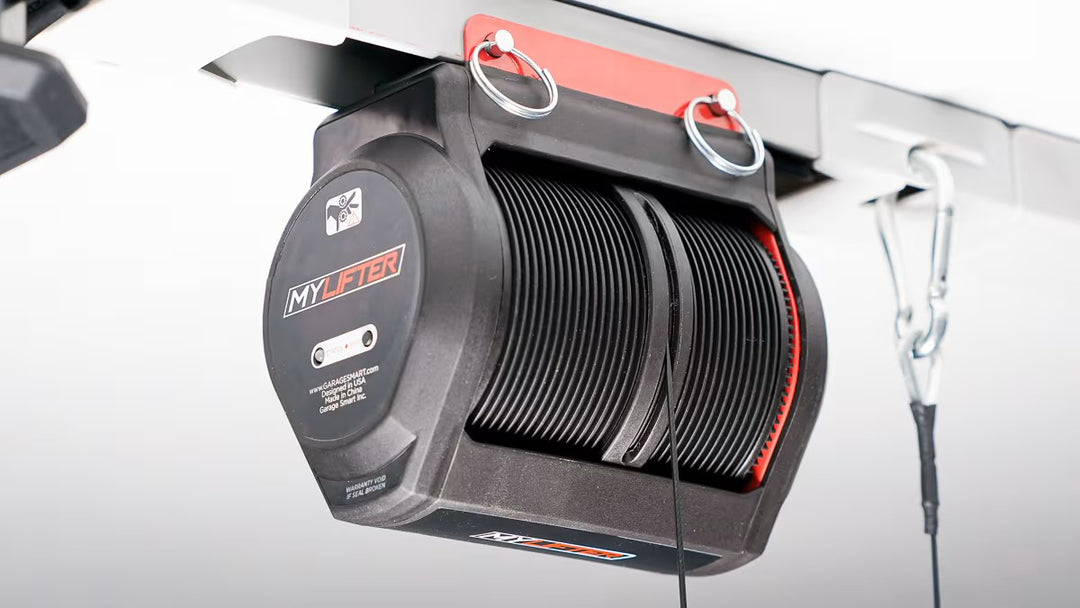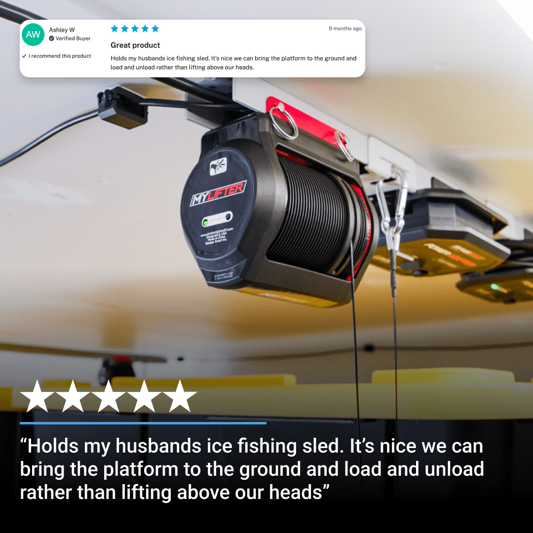 Our Platform lifters utilize our patented MyLifter motors to both safely lift and store your bulky items. They are are tested to UL Safety standards, and they are the ONLY motors on the market that weigh your items from each corner of the platform, ensuring that the load applied to your ceiling is evenly distributed across your garages framing structure.