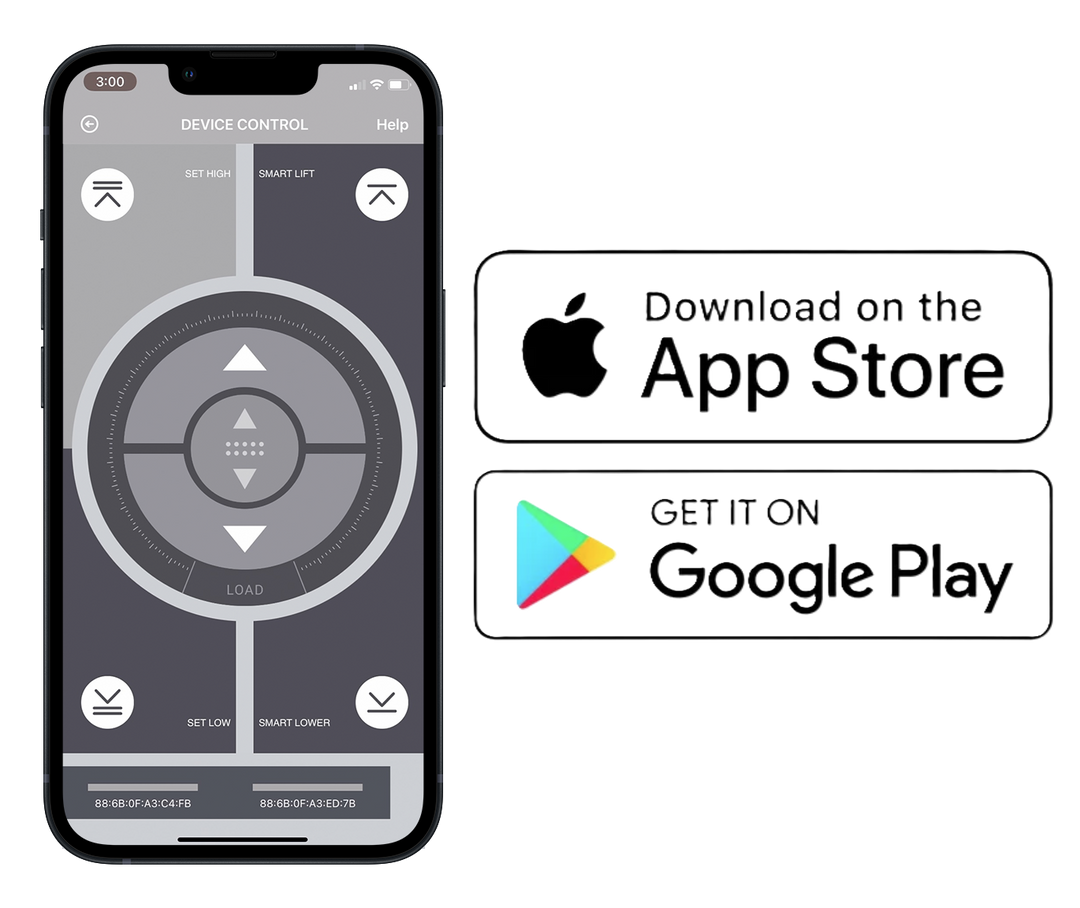 The MyLifter app’s “Smart Points" feature allows you to create raised and lowered limits for your platform. A single button press on the app automatically moves the item to the selected limit.